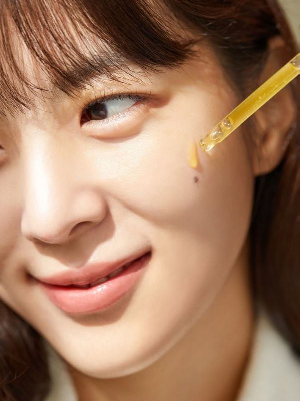Nach der Gesichtsreinigung und einem Toner eine kleine Menge der Ampulle mit der Pipette entnehmen.