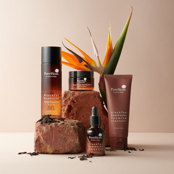 Die PUREHEALS Black Tea Kombucha Linie kombiniert die antioxidative Kraft von Schwarztee mit der revitalisierenden Wirkung fermentierter Inhaltsstoffe wie Kombucha, um die Haut zu glätten, zu stärken und ihr neue Energie zu verleihen. Der Black Tea Kombucha Toner Essence ist speziell für normale bis Mischhaut entwickelt und vereint die Leichtigkeit eines Toners mit der nährenden Wirkung einer Essence – für ein ebenmäßiges, frisches Hautbild.